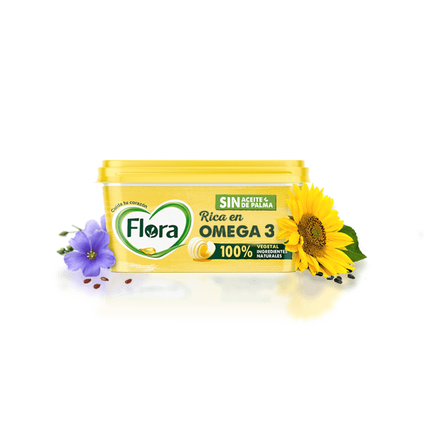Las grasas trans existen de manera natural en alimentos procedentes de rumiantes, como la carne y los productos lácteos, pero también podemos encontrarlos en las grasas vegetales cuando éstas son hidrogenadas parcialmente. Este es un complicado proceso que se da en la fábrica cuando se transforma el aceite “liquido” en grasas “sólidas”. Por ello, podemos encontrar estas grasas trans en alimentos cuyas grasas se hayan hidrogenado parcialmente (en cuyo caso se indica en el listado de ingredientes), o en alimentos derivados de rumiantes, como por ejemplo la mantequilla. Flora no utiliza grasas parcialmente hidrogenadas en ninguno de sus productos y no contiene ácidos grasos trans en consecuencia.